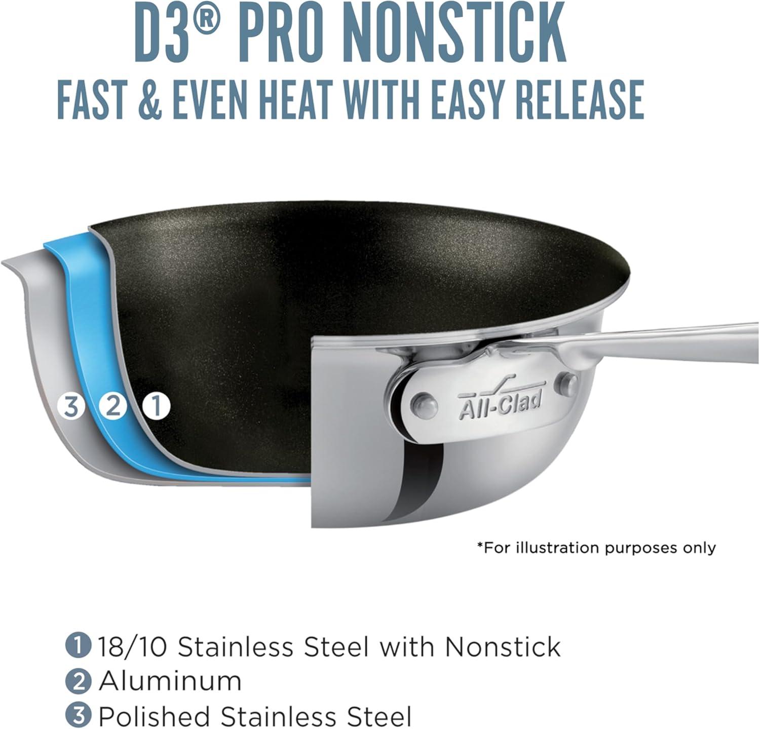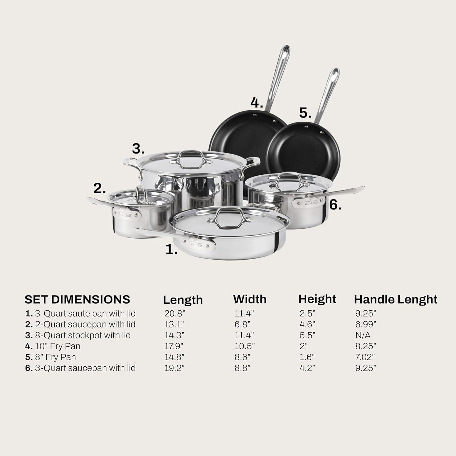 All-Clad D3 3-Ply Stainless Steel Non Stick Cookware Set 10 Piece, Induction, Oven Broiler Safe 600F, Kitchen Cooking Set w/ Frying Pans, Saucepans, Saute Pan, Stockpot, Lids, Pots and Pans, Silver(Stainless Steel Silver)