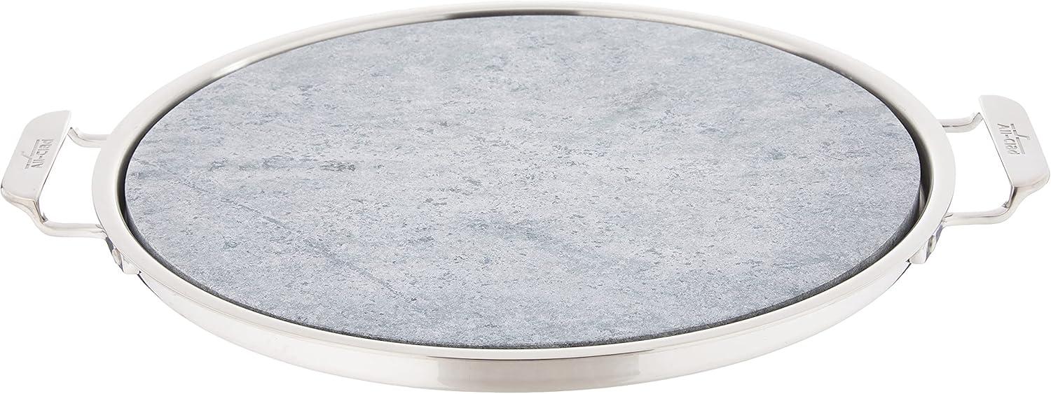 All-Clad Specialty Stainless Steel and Soapstone Pizza Stone 13 Inch Oven Broiler Safe 600F Pizza Stone for Oven Silver