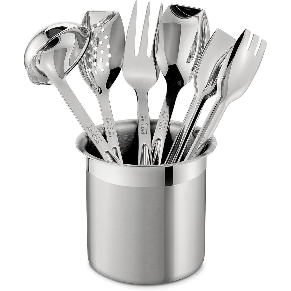 All-Clad Specialty Stainless Steel Kitchen Gadgets 5 Piece Tool Set with Caddy Kitchen Tools, Kitchen Hacks Silver(10 inch length 6-piece set)